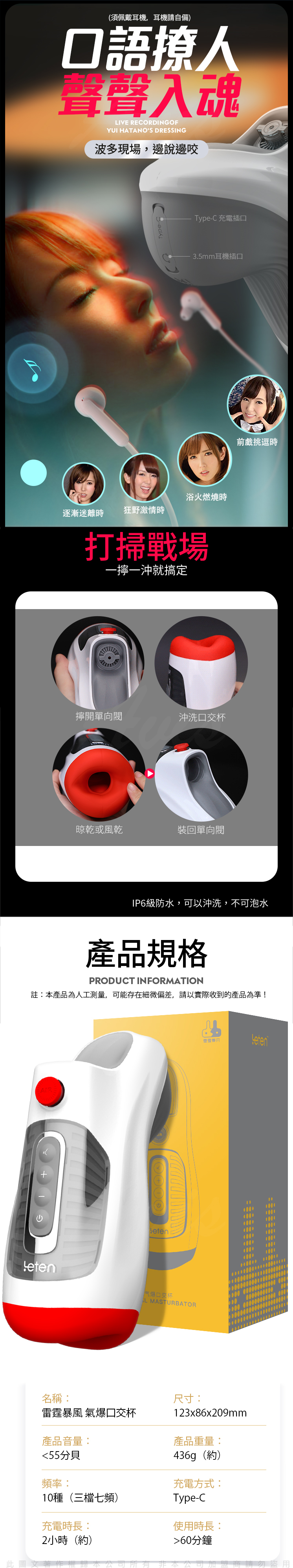 LETEN 雷霆暴風 波多野蜜唇 氣爆口愛發聲飛機杯
