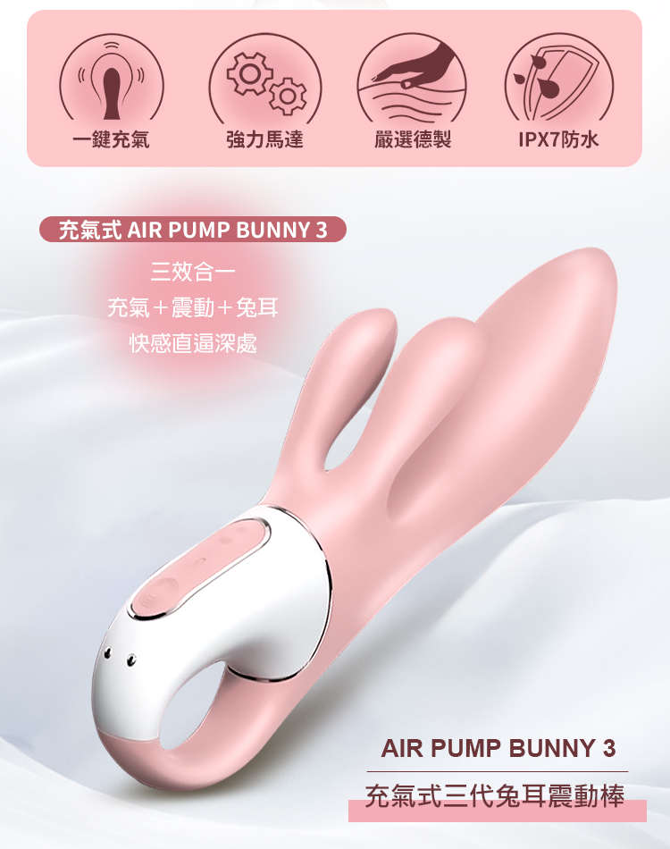 品名:Satisfyer|Air Pump Bunny 3|充氣式兔耳震動按摩棒 粉