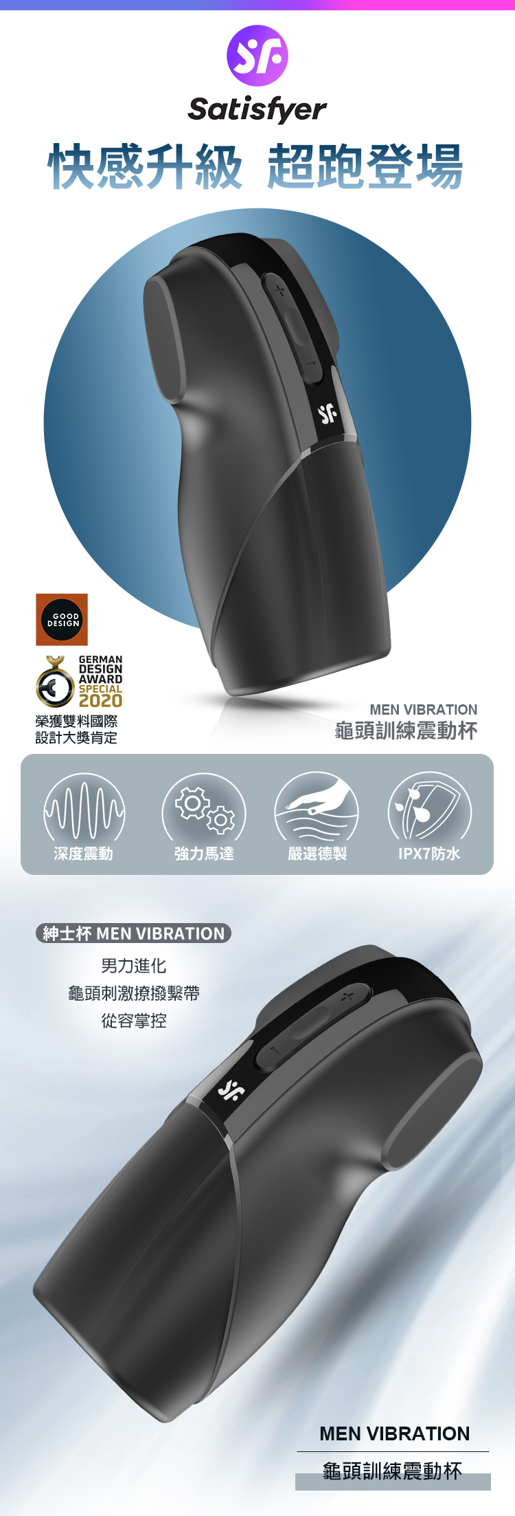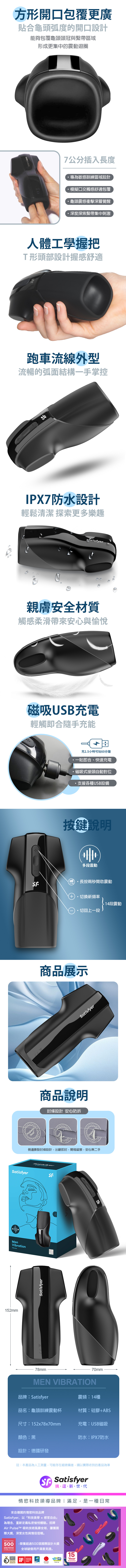 品名:Satisfyer|Men Vibration|龜頭訓練 電動飛機杯